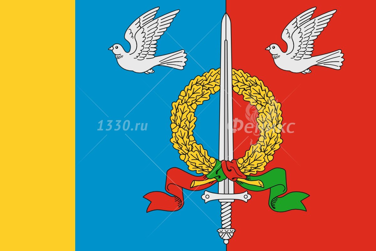 Флаг Горловского сельского поселения представляет собой прямоугольное полотнище с отношением ширины к длине 2:3, имеющее вдоль древка вертикальную жёлтую полосу шириной 1/5 длины флага. На основной части полотнища, состоящей из синей и красной равновеликих вертикальных полос изображена композиция фигур из герба муниципального образования – посередине белый меч вертикально продетый в желтый дубовый венок, перевязанный внизу лентой с развевающимися концами, справа красной, а слева зеленой, и сопровождаемый вверху по сторонам двумя белыми летящими к древку горлицами.