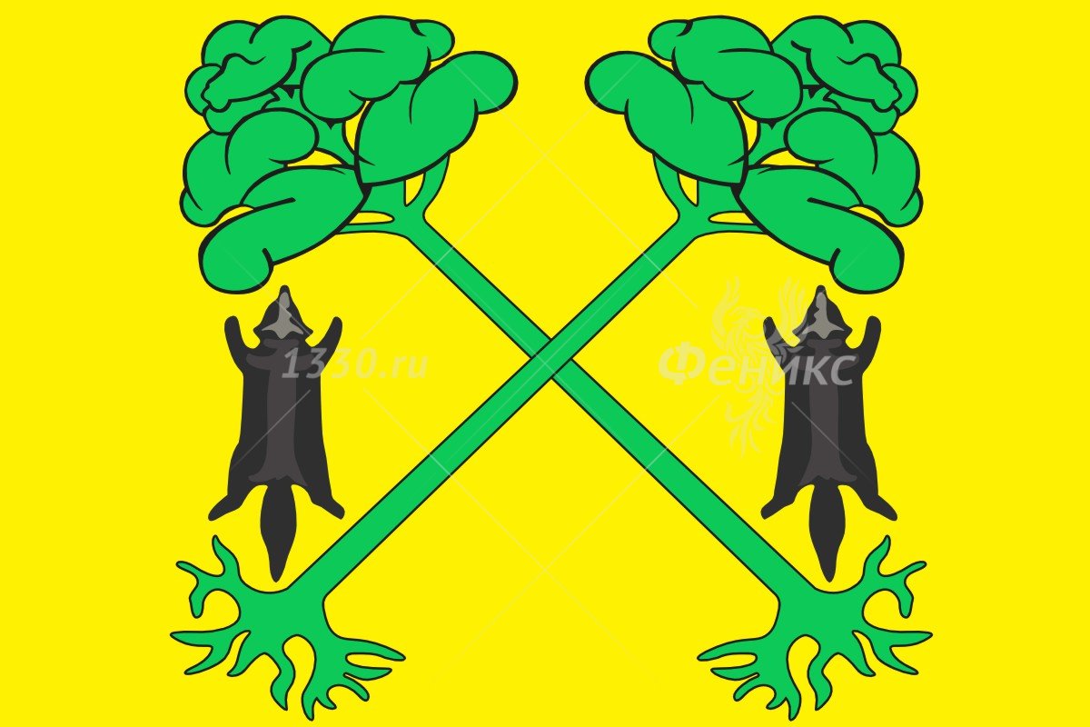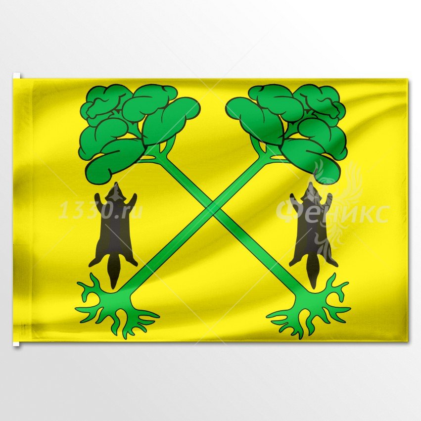 Флаг Тюкалинского городского поселения пердставляет собой прямоугольное жёлтое полотнище с отношением ширины к длине 2:3, несущее изображения фигур герба поселения: двух скрещённых зелёных сосен и двух чёрных лисьих шкур по сторонам.