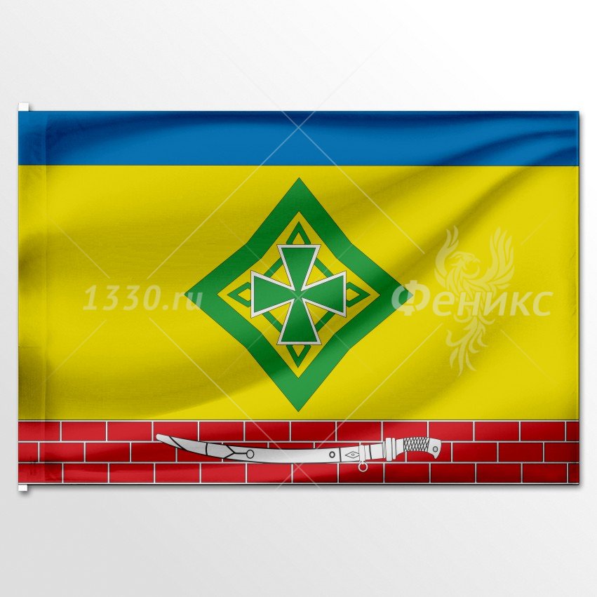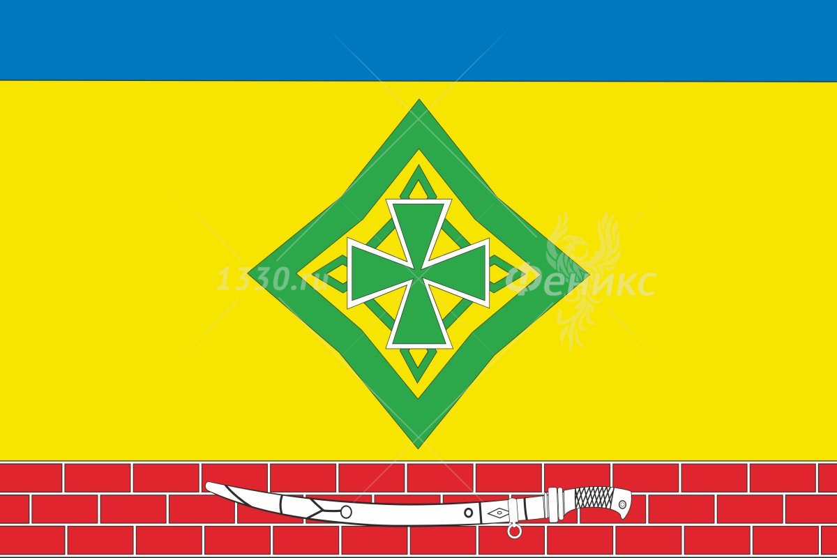 Флаг Ладожского сельского поселения представляет собой прямоугольное полотнище с отношением ширины к длине 2:3, воспроизводящее композицию герба Ладожского сельского поселения Усть-Лабинского района в жёлтом, синем (голубом), красном, зеленом и белом цветах.