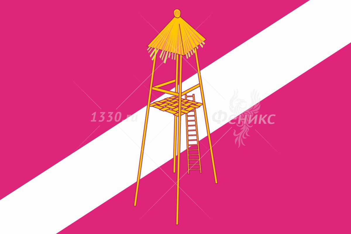Флаг Сергиевского сельского поселения пердставляет собой прямоугольное малиновое полотнище с отношением ширины к длине 2:3, несущее косую широкую (1/4 ширины полотнища) белую полосу от верхнего угла, поверх которой воспроизведена сторожевая казачья вышка жёлтого цвета.