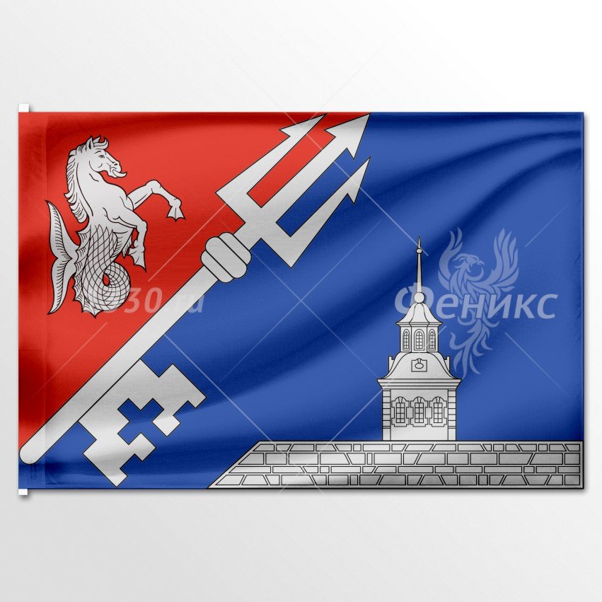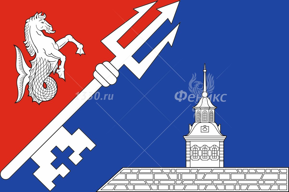 Флаг муниципального округа Гавань представляет собой прямоугольное полотнище с отношением ширины флага к длине — 2:3, воспроизводящее композицию герба муниципального образования «Гавань» в синем, красном и белом цветах.Геральдическое описание герба гласит: «В скошенном слева червлёном (красном) и лазоревом (синем, голубом) поле поверх деления — серебряный ключ с бородкой влево, и ушком наподобие трезубца, сопровождённый в червлени обращённым серебряным морским конём, а в лазури возникающей снизу и выходящей слева серебряной стеной, сложенной из камней разной формы, справа отвлечённой и скошенной; на которой — серебряная двухъярусная башня со сводчатой кровлей каждого яруса и шпилем».