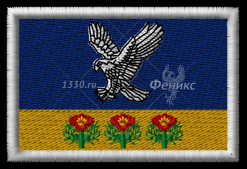 Вышитый шеврон-флажок Нехаевского района воспроизводит в технике машинной вышивки представляет собой прямоугольное положение с отношением ширины к длине 2: 3, воспроизводящее композицию флага района в синем, желтом, белом, красном и зеленом цветах.